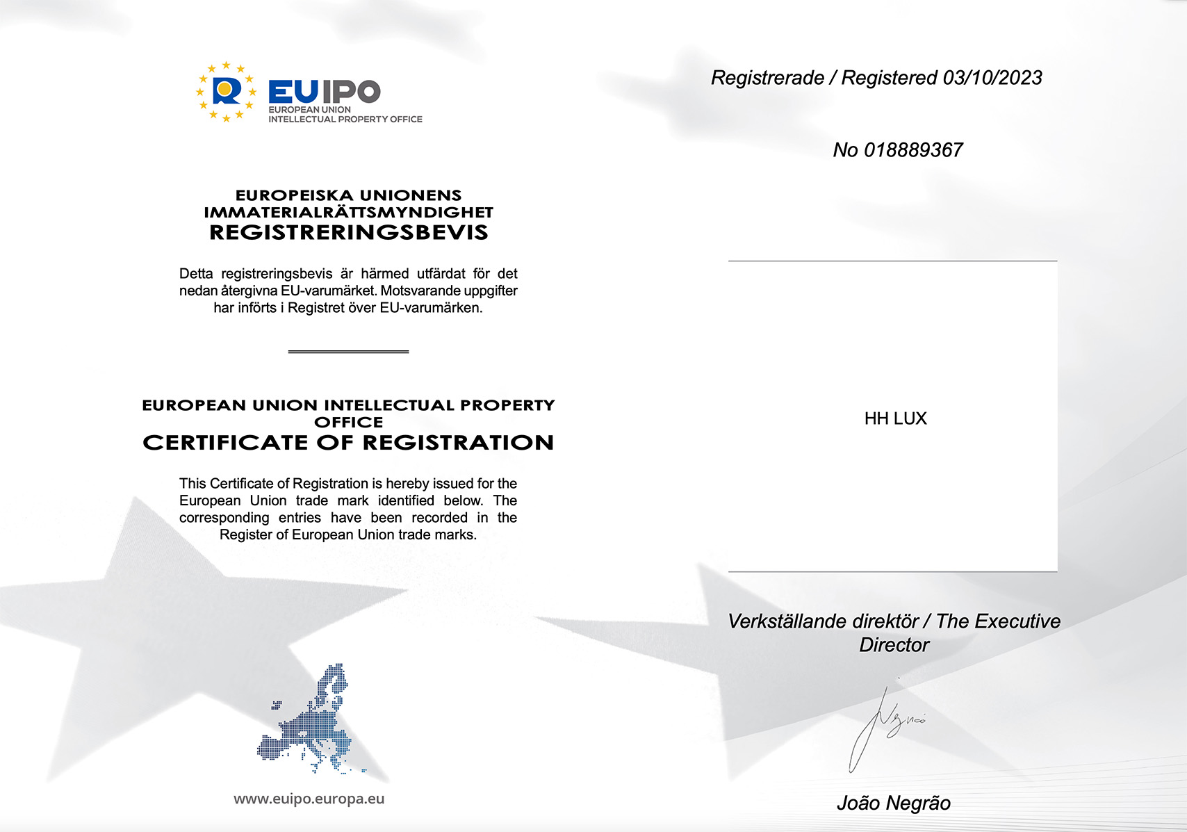 Varemærke til HH LUX® i EU og det er vi stolte af.